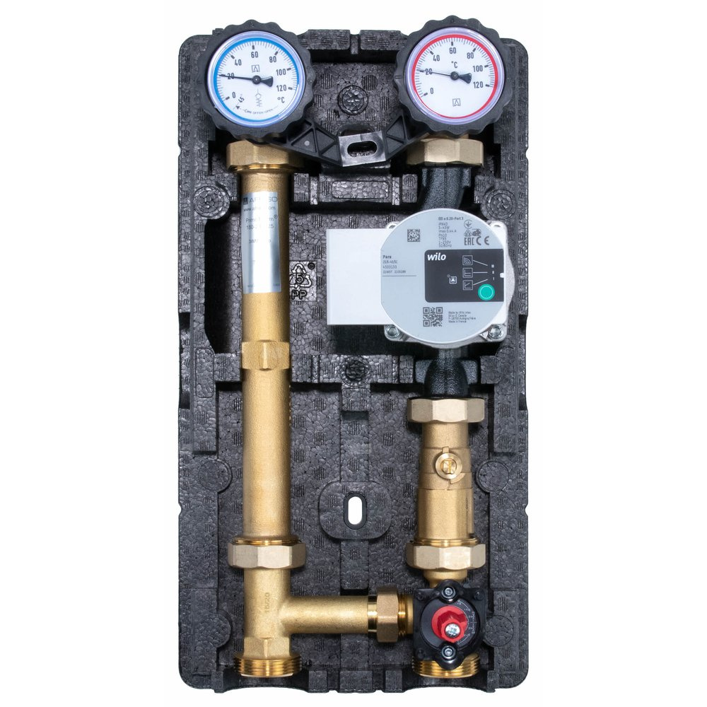 Grupa pompowa AFRISO PrimoTherm 180-2 DN 25 WP 3-WM-SM Vario GZ x GW 1 1/2'' x 1'', z zaworem mieszającym, z izolacją, z pompą obiegową Wilo Para SC 25/6, z siłownikiem arm 343 proclick