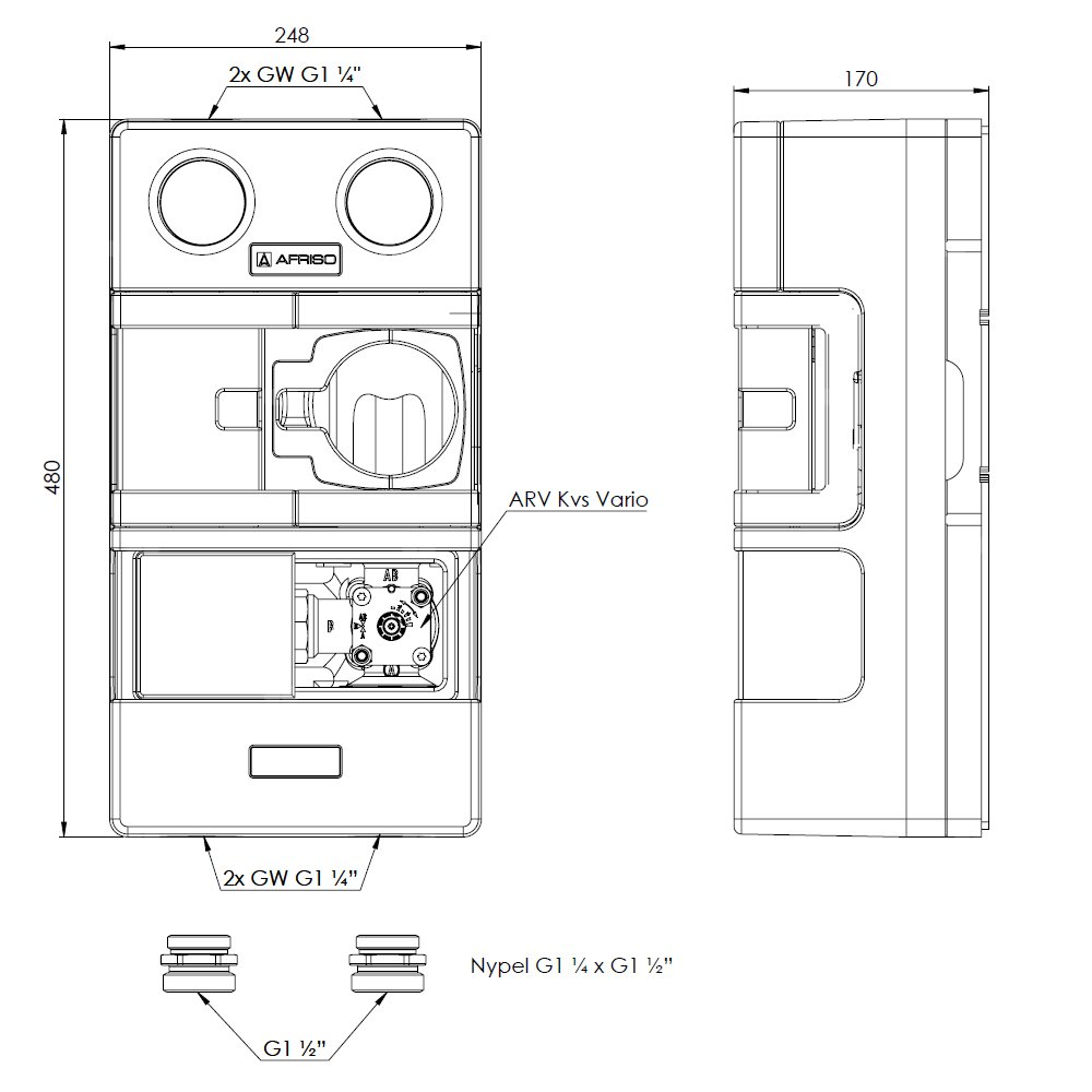 Grupa pompowa AFRISO PrimoTherm K 180-2 DN 32 GW 1 1/4'' x 1 1/4'', z zaworem mieszającym, z izolacją