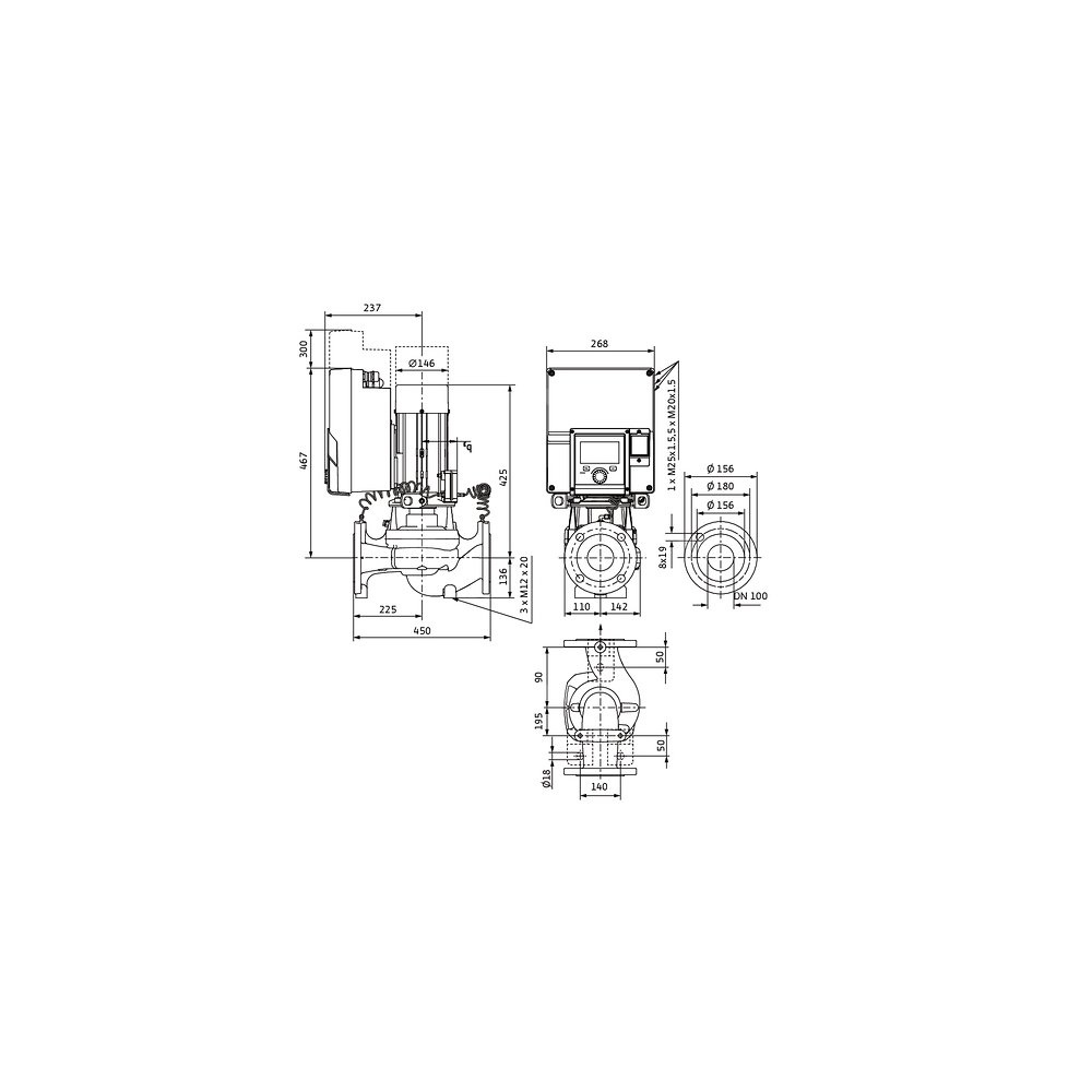 Pompa obiegowa WILO Stratos GIGA 2.0-I 100/1-25/4,0 typu in-line z silnikiem znormalizowanym 50/60 Hz, moc silnika 3.8kW 6.6 A 3000 obr/min, wlot Kołnierz DN 100