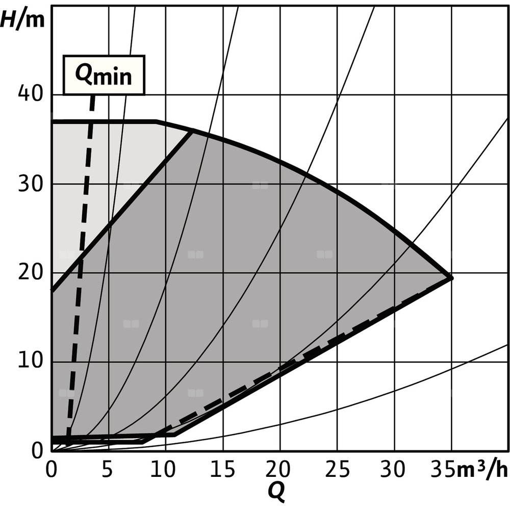 - Nastawne ograniczenie przepływu przez funkcję Q-Limit (Qmin. i Qmax.)