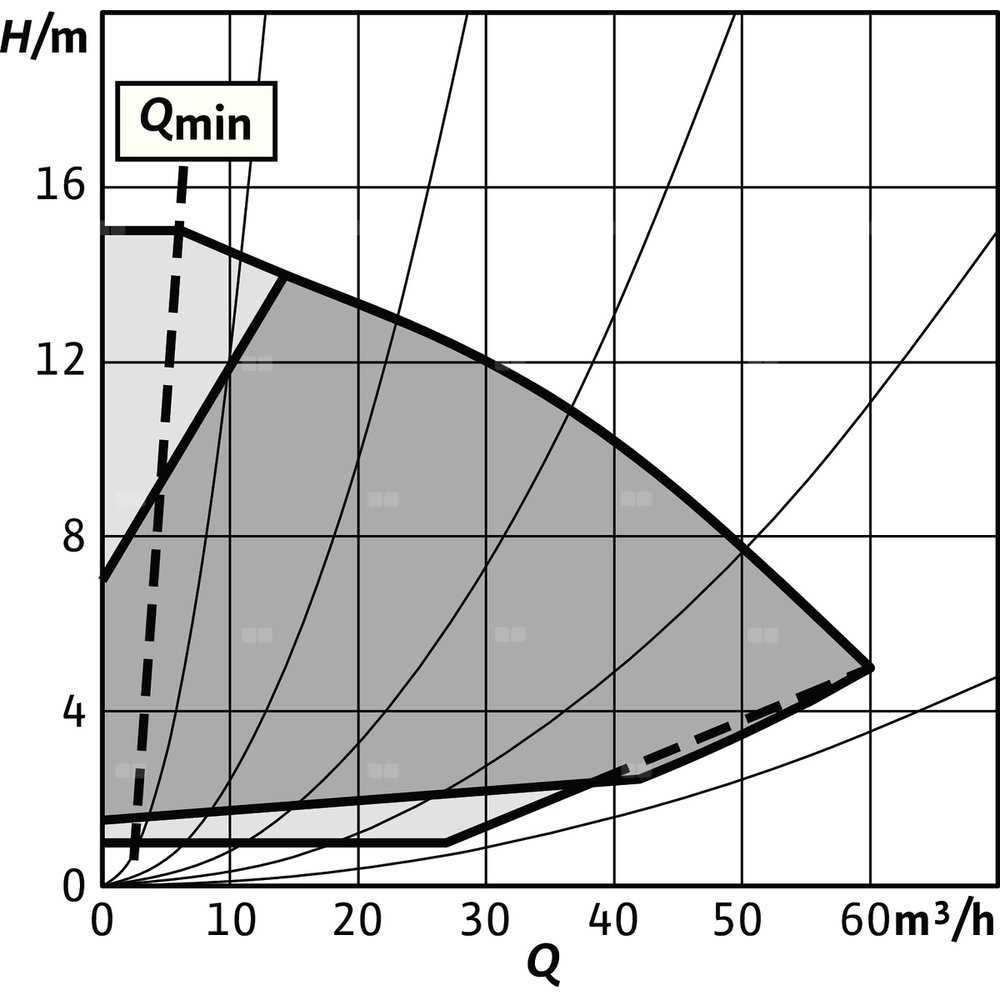 - Uszczelnienie mechaniczne do tłoczenia wody o temperaturze do Tmax. = +140 °C. Do T ≤ +40 °C dopuszczalna jest domieszka glikolu od 20 % do 40 % objętości. W przypadku mieszanin woda-glikol z zawartością glikolu > 40 % maks. do 50 % objętości i o temperaturze przetłaczanej cieczy od > +40 °C maks. do +120 °C lub przetłaczanych mediów innych niż woda należy zastosować alternatywne uszczelnienie mechaniczne.