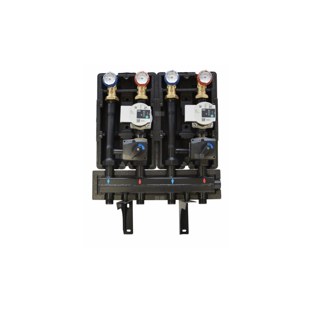 Model Zestaw D. Z Dwiema Grupami Smt 125 – Dn 25 Z Izolacją, Rozdzielaczem C 60 2F – Dn 25, Dwoma Siłownikami Mp10/140S, Uchwytami Naściennymi Delta Oraz Dwoma Zaworami Zwrotnymi.