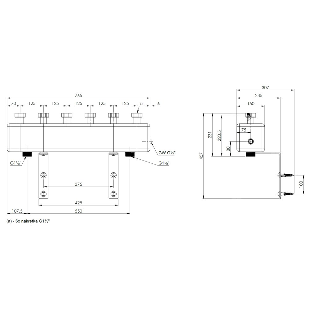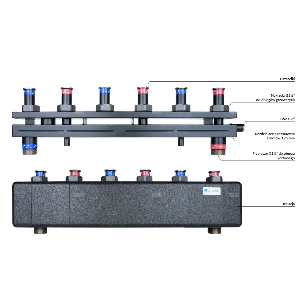 Rozdzielacz do instalacji c.o. AFRISO KSV 125-3 HW GZ 1 1/2'', 3-obieg. Nakrętka 1 1/2'', max. 70 kW