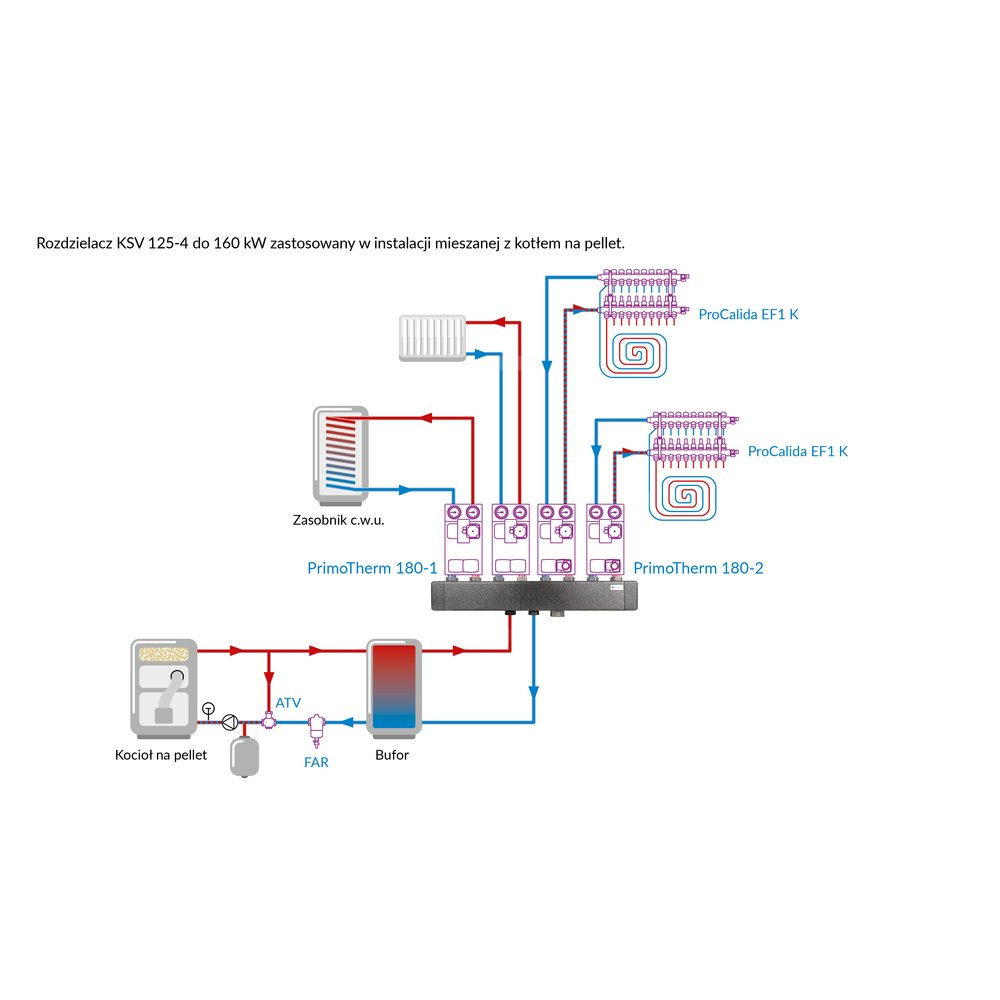 Przeznaczony do szybkiego i wygodnego podłączenia czterech grup pompowych PrimoTherm do źródła ciepła/chłodu.