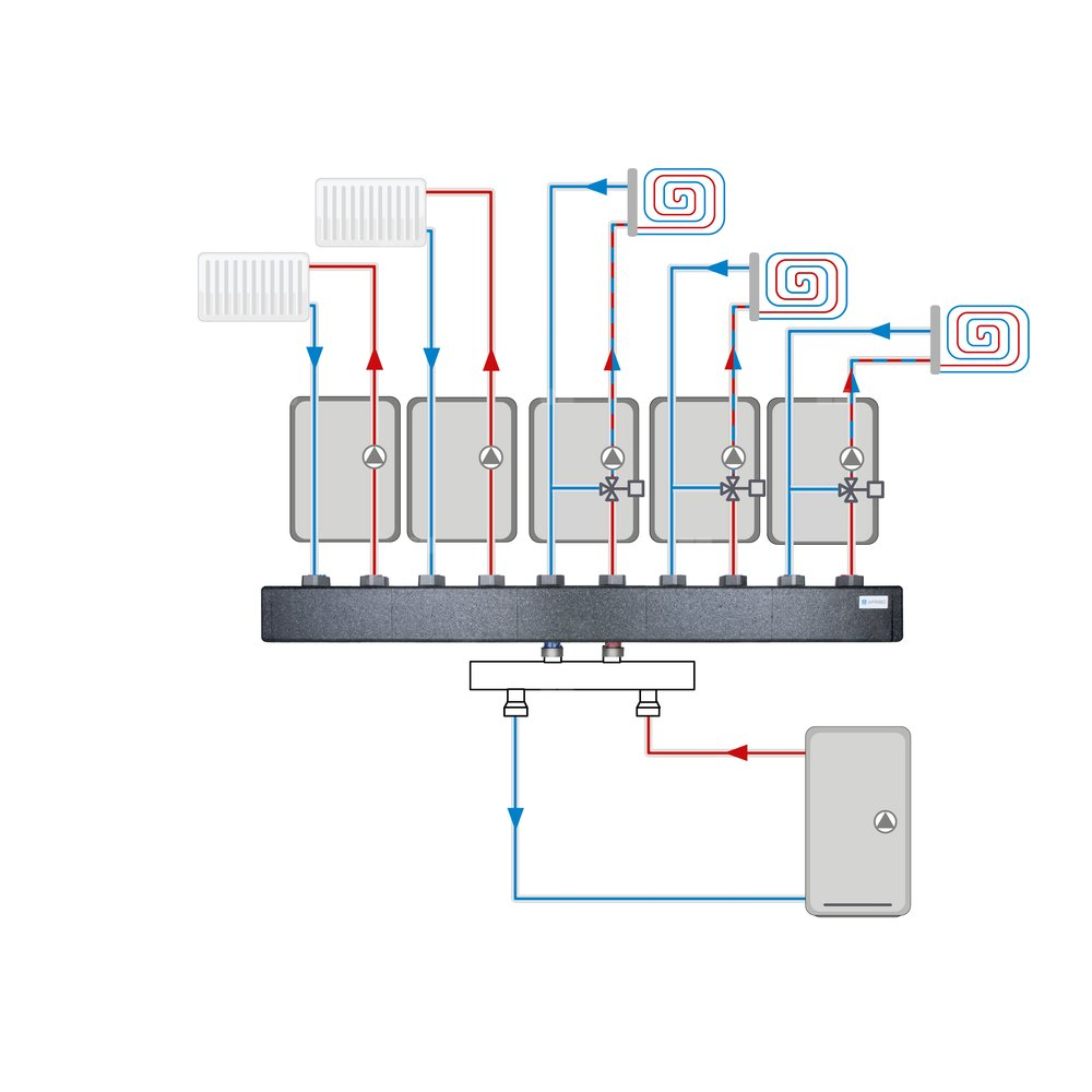 Przeznaczony do szybkiego i wygodnego podłączenia pięciu grup pompowych PrimoTherm do źródła ciepła.