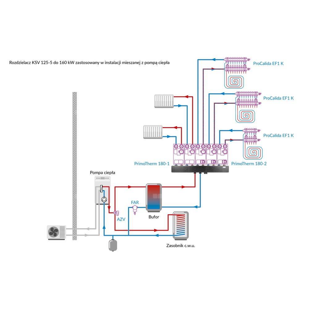 Przeznaczony do szybkiego i wygodnego podłączenia pięciu grup pompowych PrimoTherm do źródła ciepła/chłodu.