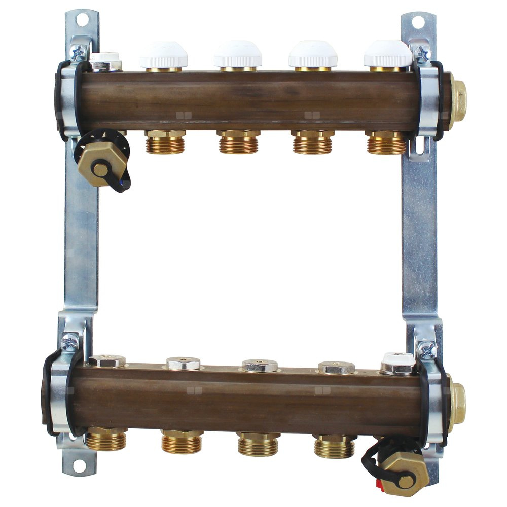 Rozdzielacz do ogrzewania podłogowego HERZ 10-obieg. mosiądz GW 1'' x GZ 3/4'' + zawór napełn/spust + odpowietrznik