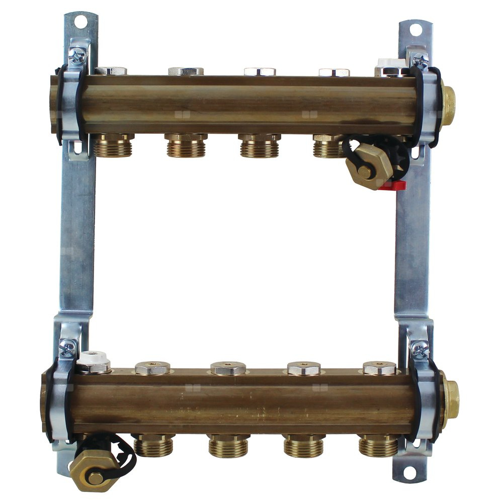 Rozdzielacz do ogrzewania podłogowego HERZ 5-obieg. mosiądz GW 1'' x GZ 3/4'' + zawór napełn/spust + odpowietrznik