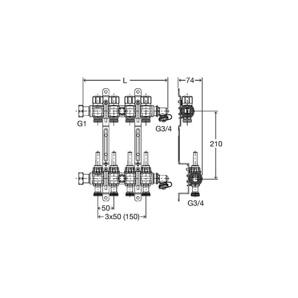Rozdzielacz do ogrzewania podłogowego VIEGA 1010 11-obieg. stal nierdzewna gw DN 25 x gw 1'' + przepływomierz + zawór przy przyłączu