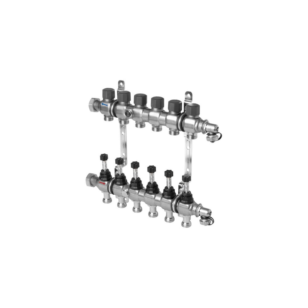 Rozdzielacz do ogrzewania podłogowego VIEGA 1010 2-obieg. stal nierdzewna gw DN 25 x gw 1'' + przepływomierz + zawór przy przyłączu