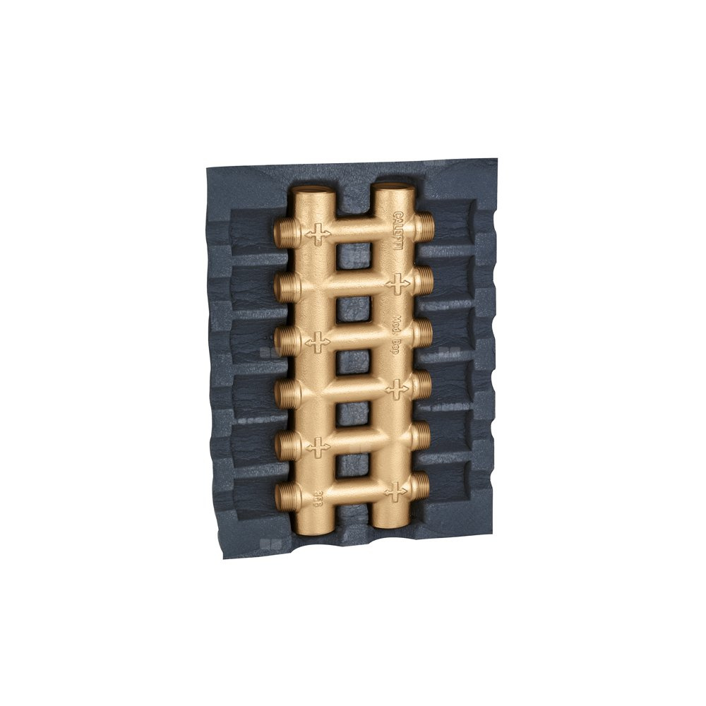 Rozdzielacz podwójny - monoblok Z izolacją. Dla instalacji grzewczych i chłodniczych. Przyłącze: G 1" (ISO 228-1) GW, Podłączenie do złączek Caleffi. przyłącza wylot: 23 p.1,5, 10 wyjść. Maksymalne ciśnienie pracy: 10 bar. Zakres temperatury medium: 0–100 °C. Rozstaw przyłączy głównych: 60 mm. Rozstaw wyjść: 40 mm.