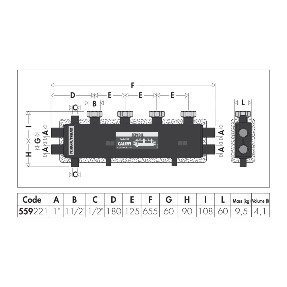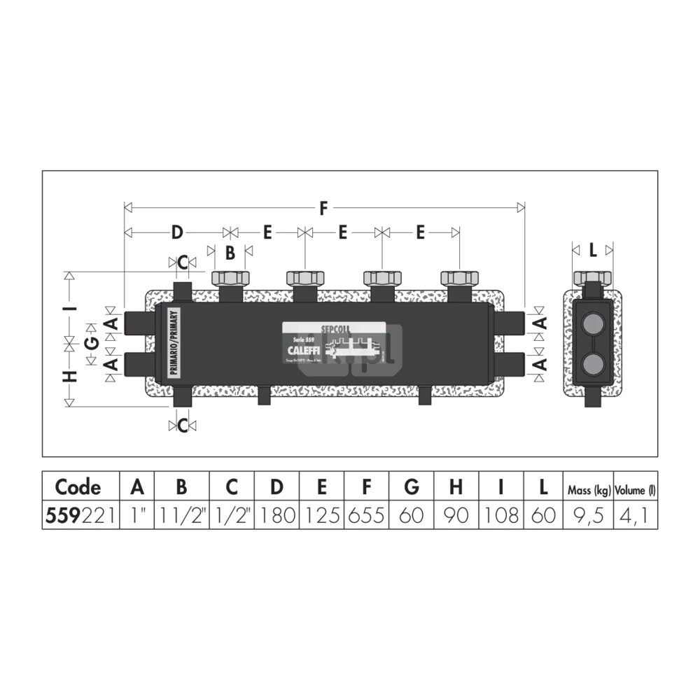 Przyłącza wyjściowe obiegów wtórnych dwa 1 1/2" z nakrętką górne i jedno 1" GW środkowe.