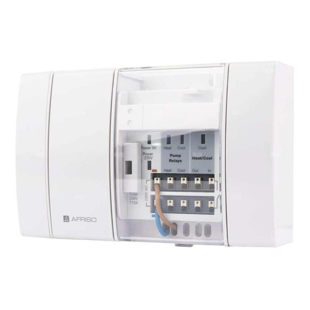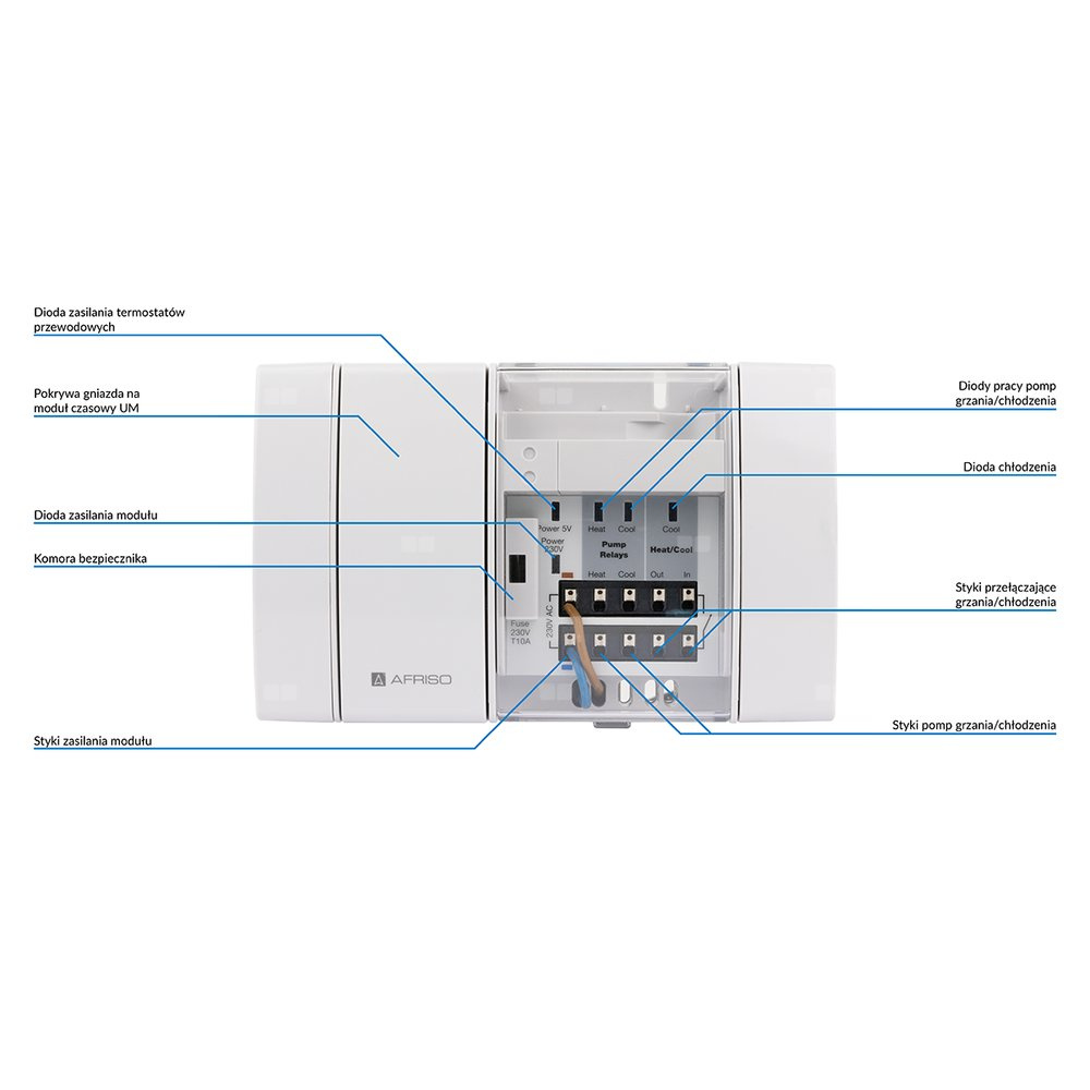 Umożliwia sterowanie pracą pomp grzania i chłodzenia przez dedykowane styki przełączające.