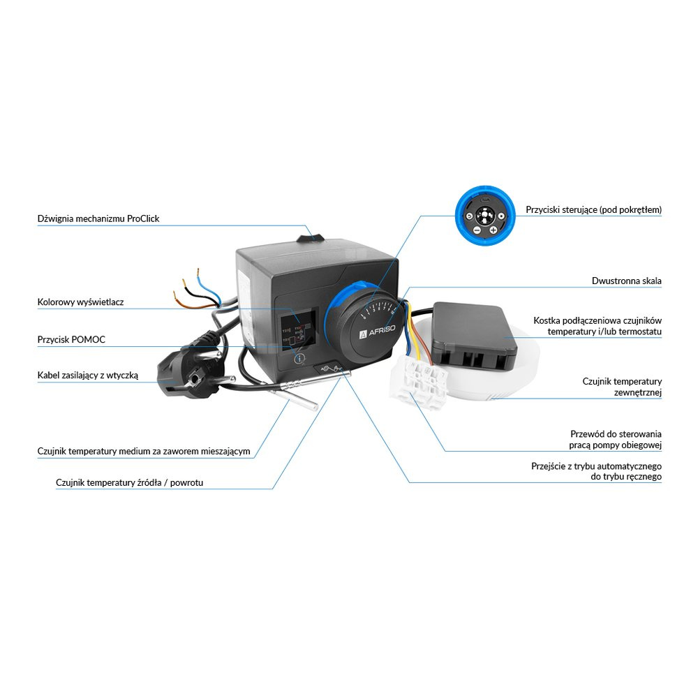 Reguluje temperaturę medium na podstawie temperatury zewnętrznej i ustawionej krzywej grzewczej.