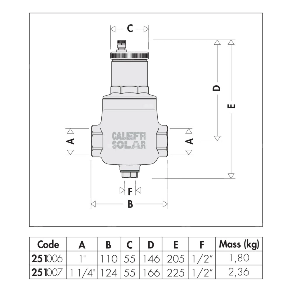 Separator powietrza do instalacji solarnych Z odwodnieniem. Przyłącze: G 1 1/4" (ISO 228-1) GW. Maksymalne ciśnienie pracy: 10 bar. Maksymalne ciśnienie upustowe: 10 bar. Zakres temperatury medium: -30–180 °C. Maksymalne stężenie glikolu: 50 %. Medium: woda. Materiał: mosiądz.