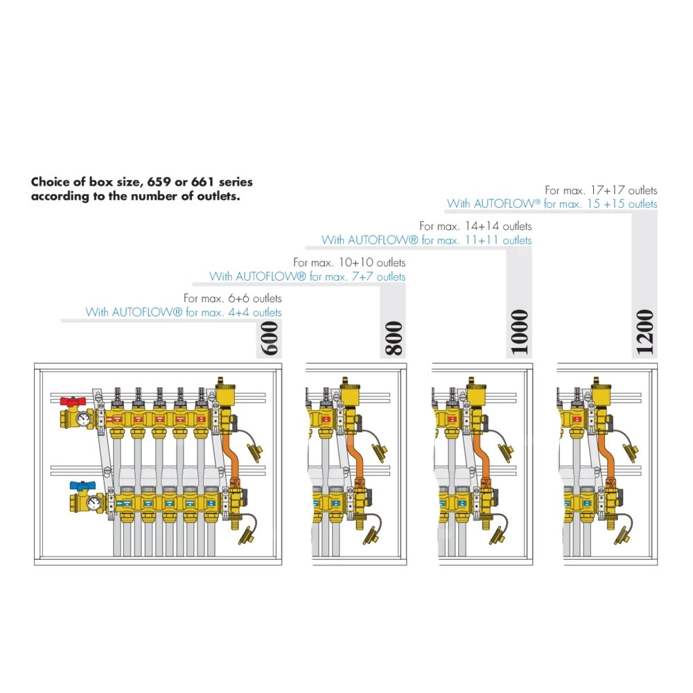 Skrzynka do rozdzielaczy serii 349, 350, 592, 662, 663, 668.S1, 671, 664 i 665. Głębokość: 110–140 mm. Wysokość: 500 mm. Szerokość: 400 mm. Materiał: blacha malowana.