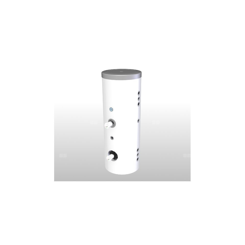 Zbiorniki wymienników wykonane są z blachy stalowej. Górny zbiornik wody użytkowej wyposażony jest w podwójną wężownicę spiralną o dużej powierzchni grzewczej, która znacząco usprawnia proces przygotowania c.w.u. przede wszystkim przez źródło nisko lub średnio temperaturowe. Zbiornik umieszczony w górnej części urządzenia pokryty jest po stronie wewnętrznej wysokiej jakości wysokotemperaturową emalią ceramiczną firmy PRINCE, (światowego lidera w branży emalii ceramicznych do wyrobów stalowych. Zbiornik pokryty tą emalią posiada atest PZH). Dodatkowym zabezpieczeniem antykorozyjnym zbiornika jest anoda magnezowa, której działanie opiera się na różnicy potencjałów elektrochemicznych materiału zbiornika i anody. Dolny zbiornik wypełniony wodą grzewczą pełni rolę akumulatora ciepła, szczególnie przydatnego dla nisko lub średnio temperaturowych źródeł ciepła jakimi są pompy ciepła. Zapobiega on częstym uruchomieniom pompy ciepła przy odbudowie zapasów czynnika grzewczego, co zmniejsza zużycie energii elektrycznej, przekładając się tym samym na ograniczenie kosztów eksploatacji systemu grzewczego. W przypadku korzystania ze źródeł ciepła o zmiennej wydajności bufor ten pozwala na dopasowanie mocy grzewczej do wymaganego odbioru.