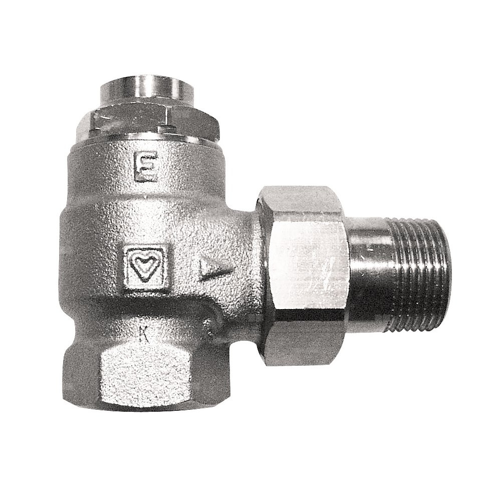 HERZ-RL-1-E - zawór powrotny, figura kątowa. Przyłącze grzejnikowe z uszczelnieniem stożkowym. Modele standardowe z mufa gwintowaną.
