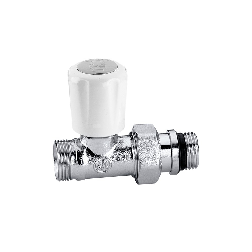 Prosty grzejnikowy zawór termostatyczny z pokrętłem przystosowany do montażu głowic termostatycznych, elektronicznych i siłowników termoelektrycznych. podłącznie rury: G 3/4" A (ISO 228-1) GZ, wlot, podłączenie proste, Podłączenie do złączek Caleffi. podłączenie grzejnika: G 1/2" A (ISO 228-1) GZ, wylot, podłączenie proste. Maksymalne ciśnienie pracy: 10 bar. Zakres temperatury medium: 5–100 °C. Wykończenie: chromowane. Kv: 1,79 m³/h. Cv: 2.0 gpm. Materiał: mosiądz.
