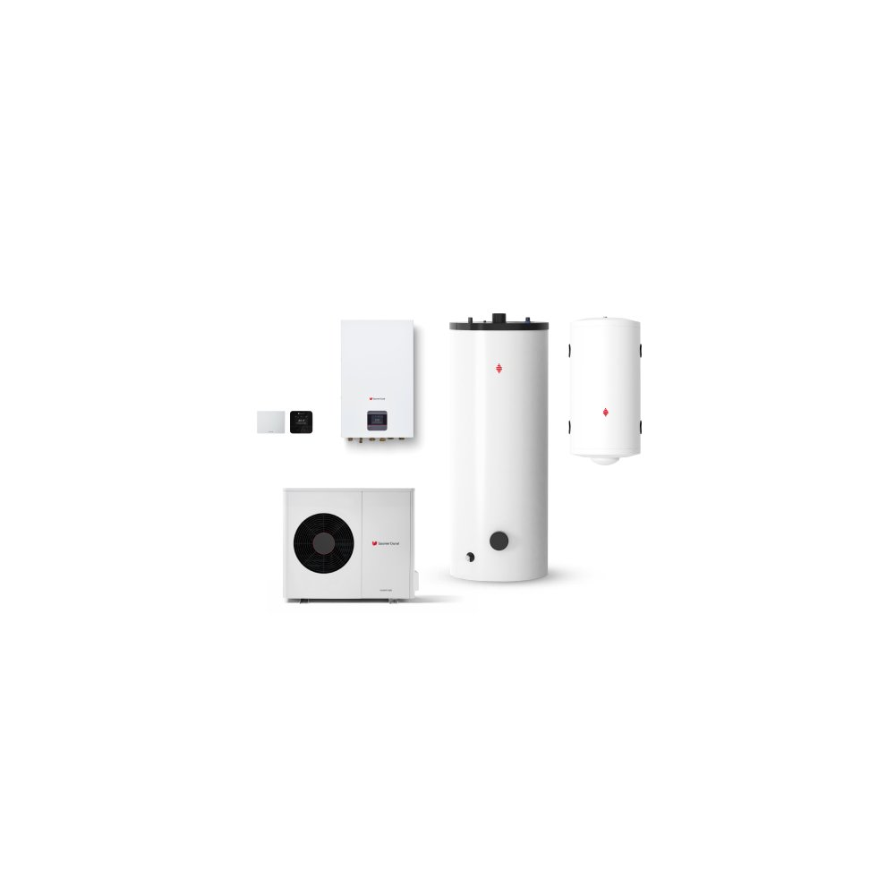 Pompa ciepła powietrze/woda typu split HA 7-8.2 OS 230V, moduł ścienny HA 7-8.2 WSB, regulator MiPro sense SRC 720, zintegrowany moduł internetowy SR 940, zasobnik cwu FEW 250, czujnik cwu w dostawie z modułem ściennym, bufor co WN RW 50.