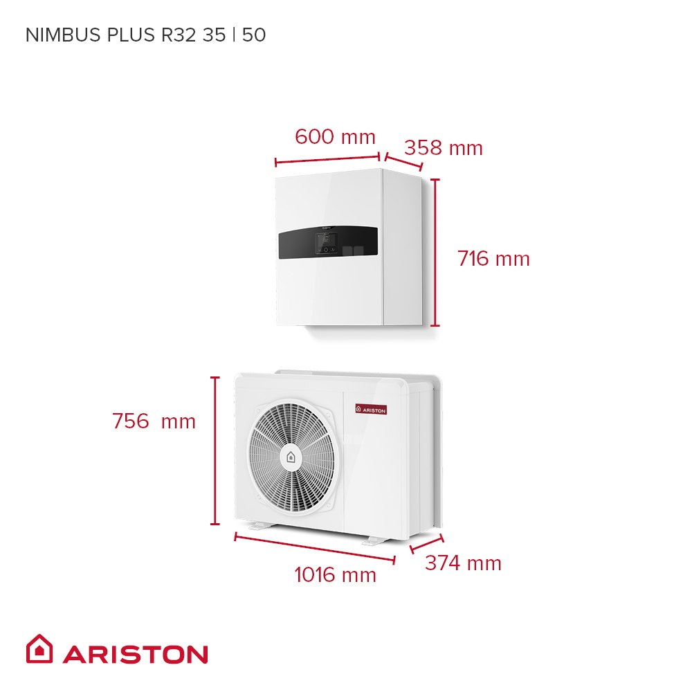 Pakiet - Pompa ciepła powietrze-woda split ARISTON NIMBUS PLUS S NET R32 5 kW 230 V + Moduł naścienny SENSYS HD + Moduł komunikacji internetowej (aplikacja Ariston Net)