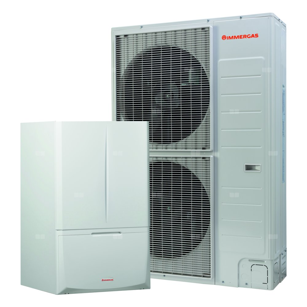 • Urządzenie hybrydowe typu split, łączące w jednostce wewnętrznej elementy pompy ciepła z jednofunkcyjnym gazowym kotłem kondensacyjnym przeznaczonym do współpracy z zewnętrznym zasobnikiem c.w.u., o mocy 32 kW. Połączenie pompy ciepła z gazowym kotłem kondensacyjnym pozwala zaspokoić całkowite zapotrzebowanie budynku na moc grzewczą bez konieczności instalowania dodatkowych źródeł ciepła w systemie. W przypadku niskich temperatur powietrza zewnętrznego, kocioł kondensacyjny w całości pokrywa zapotrzebowanie budynku na moc grzewczą.
