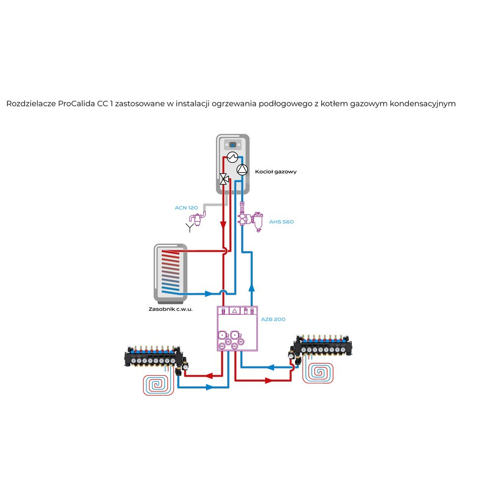Rozprowadza ciepło / chłód ze źródła na poszczególne pętle instalacji płaszczyznowej.