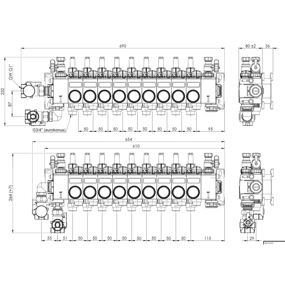 Stosowany w instalacjach płaszczyznowych grzewczych lub chłodzących.Montowany w szafce umieszczonej w ścianie / na ścianie budynku lub pod stropem w instalacjach sufitowych.