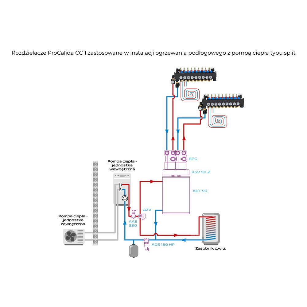 Rozprowadza ciepło / chłód ze źródła na poszczególne pętle instalacji płaszczyznowej.