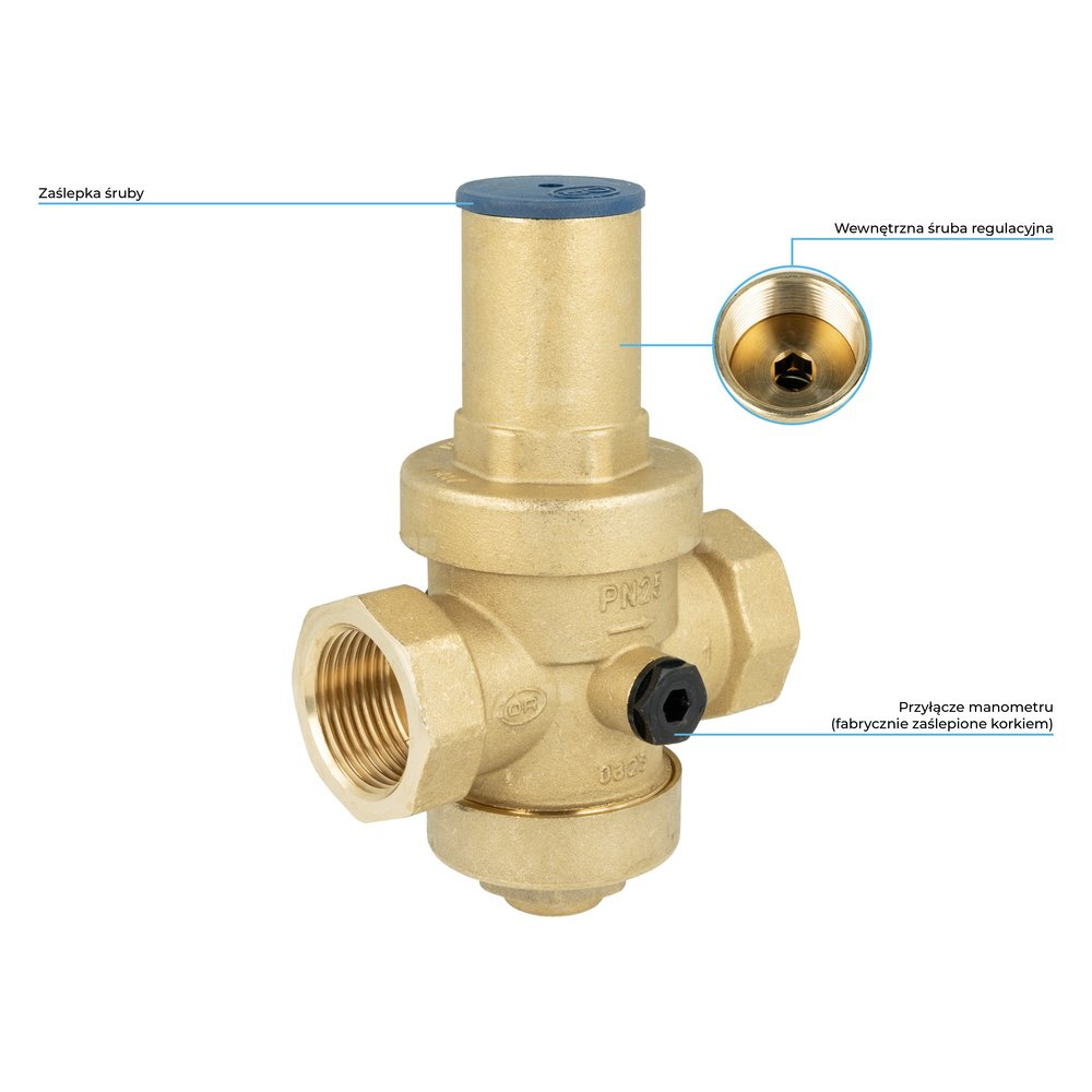Stosowany w instalacjach wody pitnej, grzewczych i chłodzących.Montowany na przyłączu wodociągowym za licznikiem wody lub w innym miejscu, gdzie wymagane jest obniżenie ciśnienia.