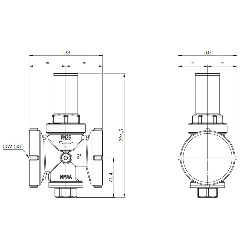 Obniża i stabilizuje ciśnienie wody do ustawionej wartości niezależnie od zmian ciśnienia na wlocie do reduktora.