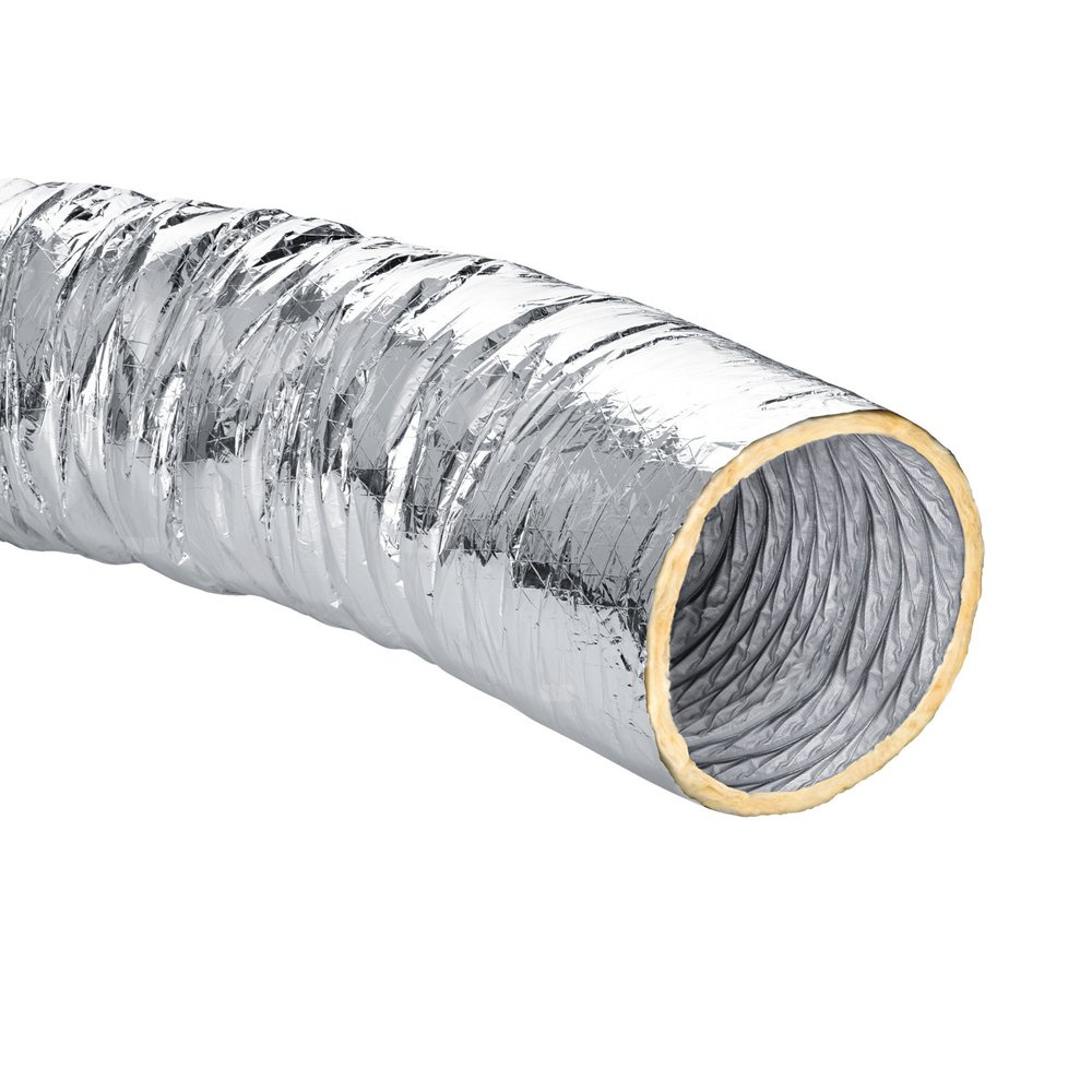 • Powłoka zewnętrzna wykonana jest z laminowanej folii aluminiowej, a wewnętrzna z tkaniny polipropylenowej.Wkład z wełny mineralnej spełnia zadanie izolacji akustycznej i termicznej.Końcówki rękawów mogą być owalnie odkształcane do mocowania.
