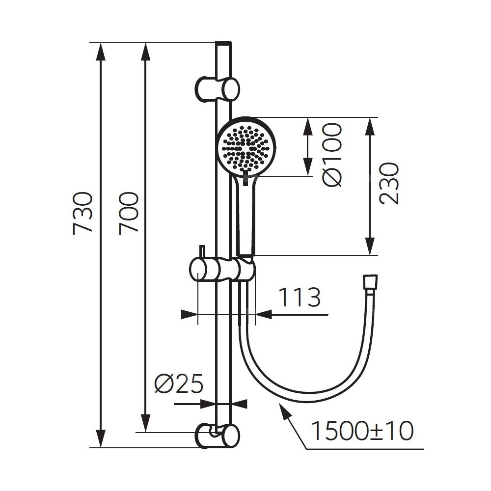 Kompletny zestaw natryskowy w unikalnym jasno złotym kolorze. Zestaw składa się z wielofunkcyjnej, okrągłej rączki natryskowej, drążka z regulowanymi mocowaniami oraz trwałego węża z anty-skrętną końcówką.