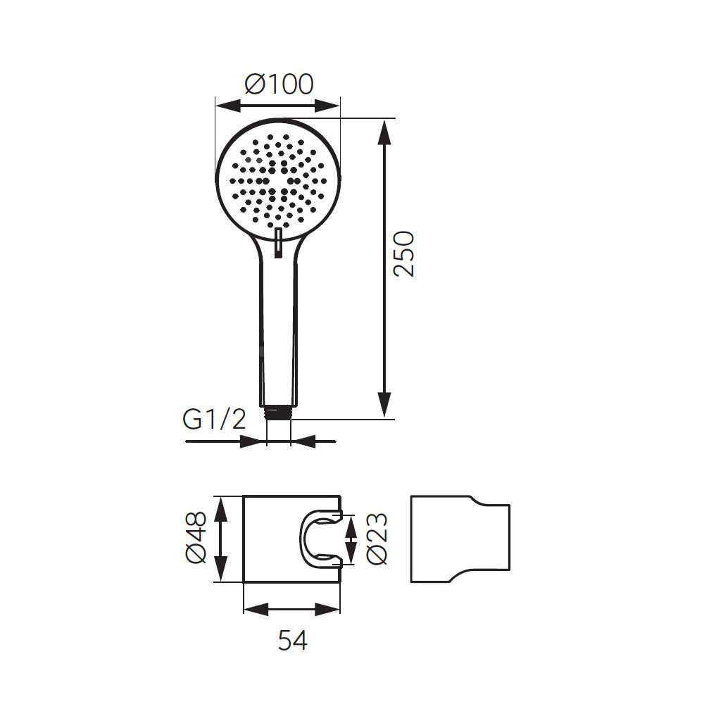 Kompletny zestaw natryskowy w unikalnym jasno złotym kolorze. Zestaw składa się z wielofunkcyjnej, okrągłej rączki natryskowej, minimalistycznego uchwytu ściennego oraz trwałego węża z anty-skrętną końcówką.