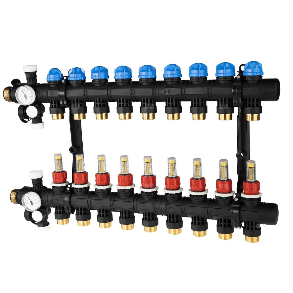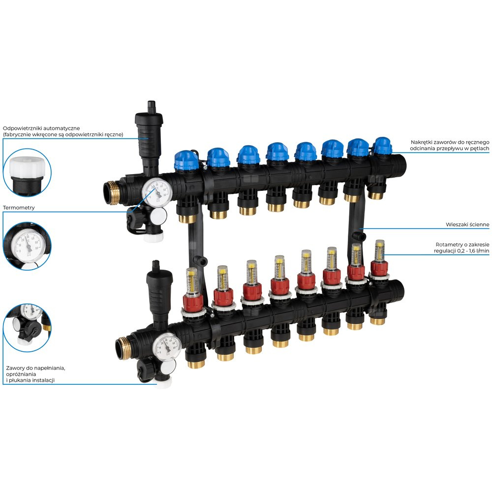 Rozprowadza ciepło/chłód ze źródła na poszczególne pętle instalacji płaszczyznowej.