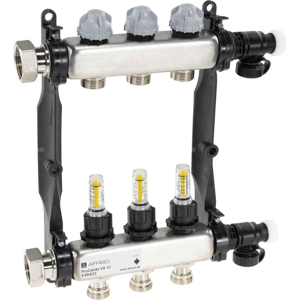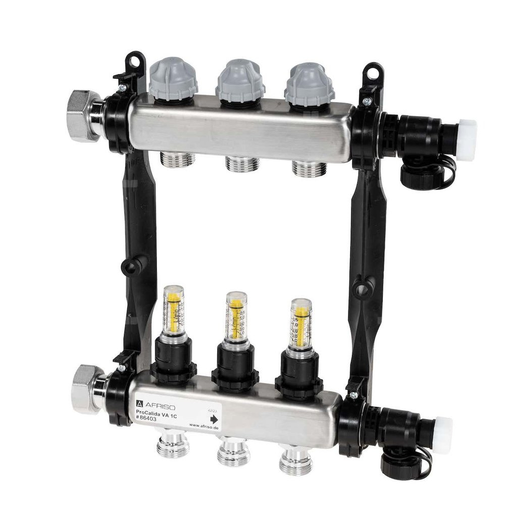 Rozdzielacz do ogrzewania podłogowego AFRISO ProCalida VA 1C 3-obieg. stal nierdzewna GZ 1'' x euroconus 3/4''
