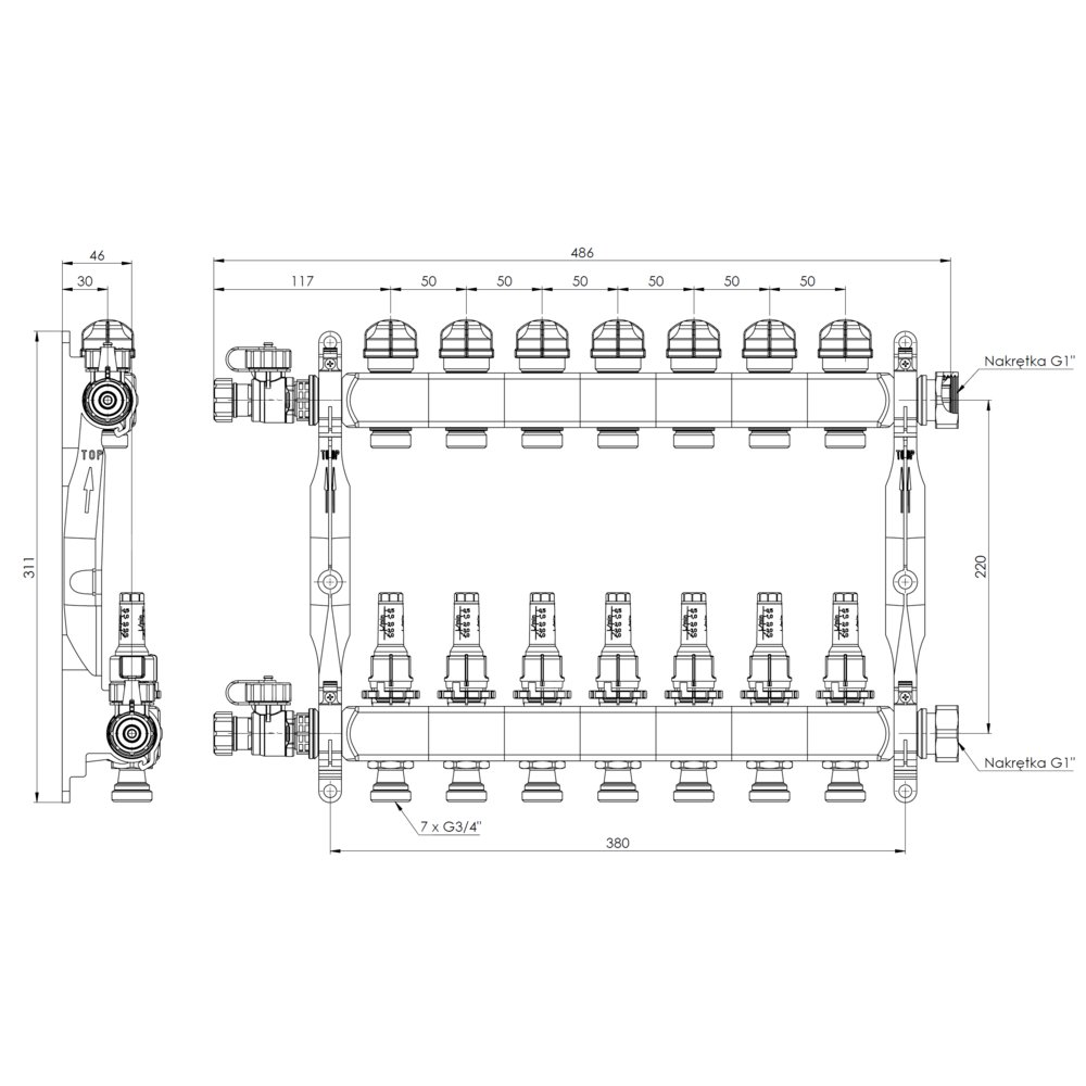 Rozprowadza ciepło/chłód ze źródła na poszczególne pętle instalacji płaszczyznowej.