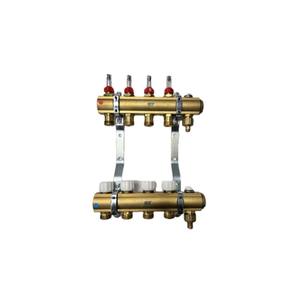 Rozdzielacz do ogrzewania podłogowego QIK MAGNET 6-obieg. mosiądz GW 1'' x GZ 3/4'' + przepływomierz