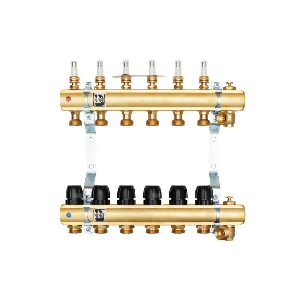 Rozdzielacz do ogrzewania podłogowego QIK MAGNET PREMUIM IV 8-obieg. mosiądz GW 1'' x GZ 3/4'' + przepływomierz