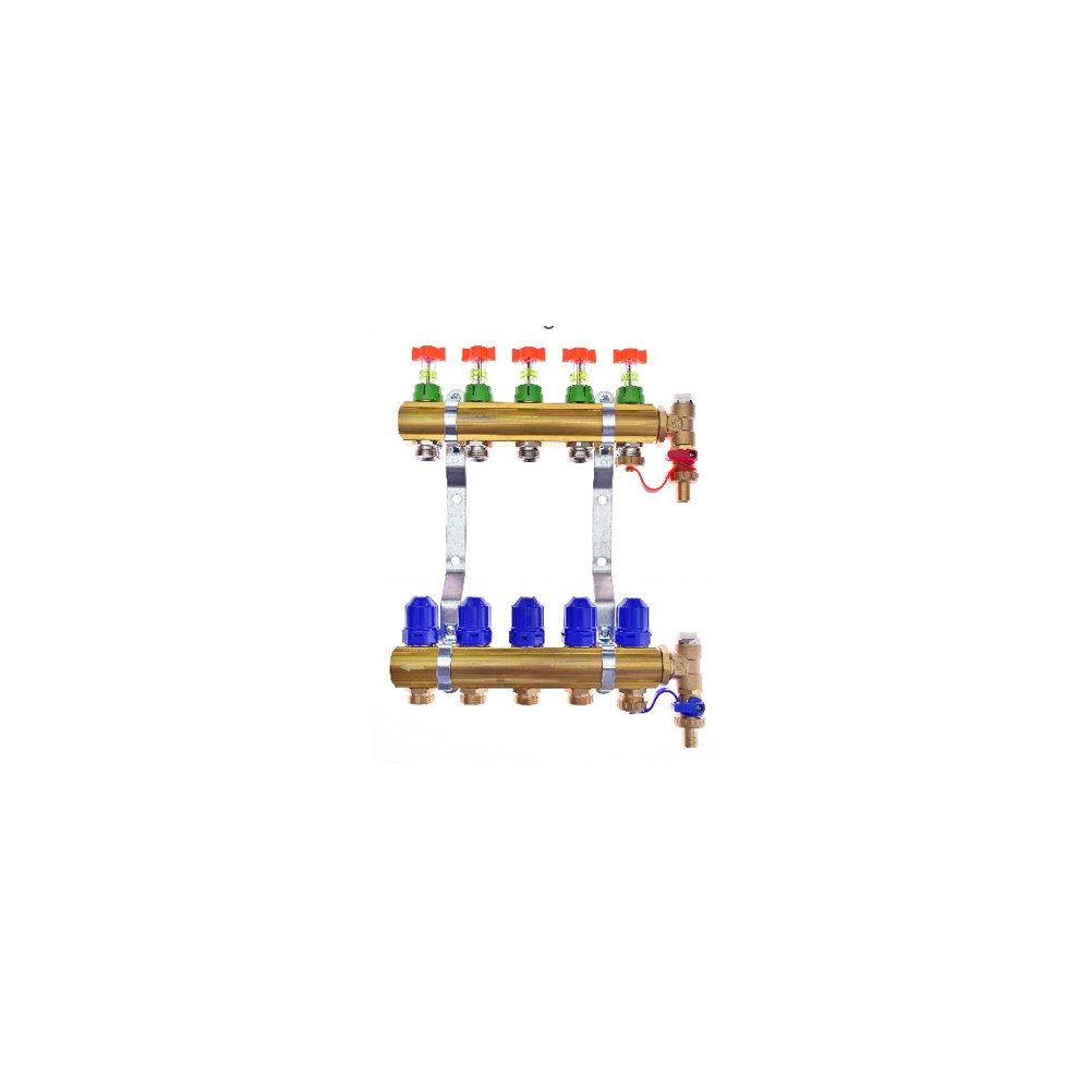 Rozdzielacz do ogrzewania podłogowego QIK Optimo BASIC III PC - RMSZT-2-50 2,5l 9-obieg. mosiądz GW 1'' x GZ 3/4'' + przepływomierz