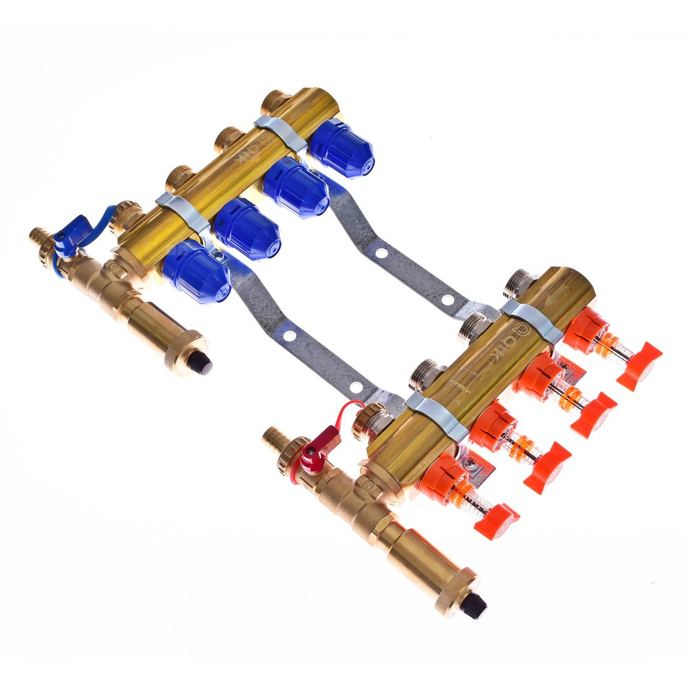 Rozdzielacz do ogrzewania podłogowego QIK Optimo STANDARD III - RMSZT-1-50 4-obieg. mosiądz GW 1'' x GZ 3/4'' + przepływomierz