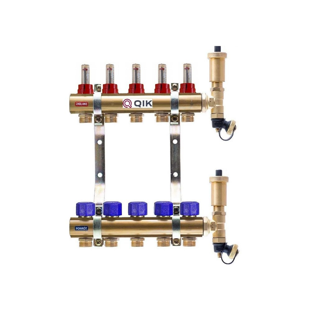 Rozdzielacz do ogrzewania podłogowego QIK STANDARD II TN 9-obieg. mosiądz GW 1'' x GZ 3/4'' + przepływomierz