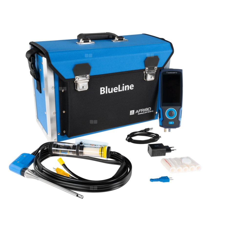 Sensor O2, CO/H2, pomiar ciągu kominowego, analizator spalin AFRISO EUROLYZER S1 standard, bez drukarki, z walizką