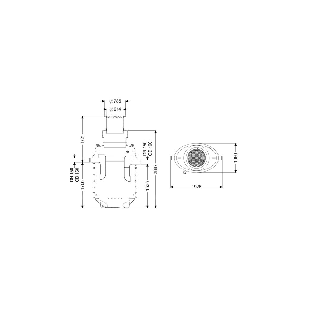 Wielkość nominalna dopływu (DN): 150 mm