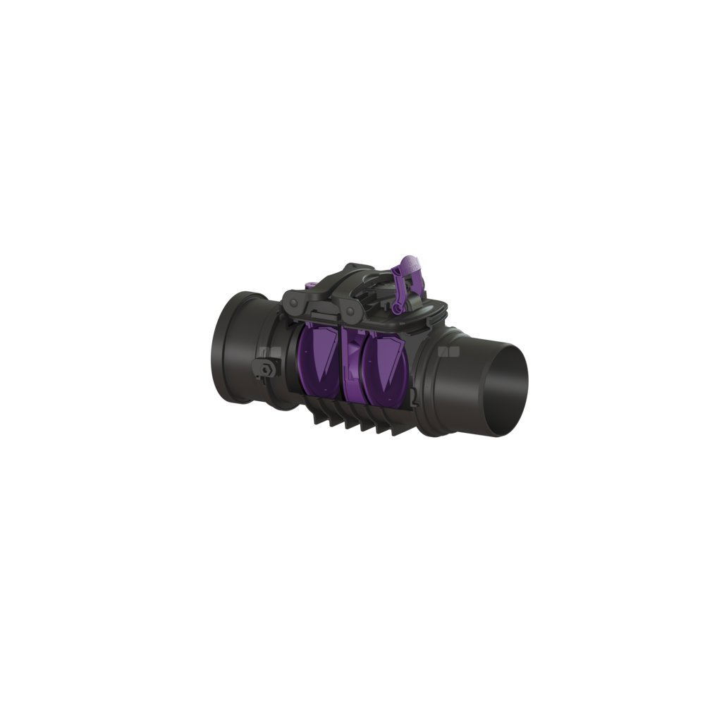 Zawór przeciwzalewowy do ścieków bez fekaliów jest wyposażony w dwie klapy mechaniczne, które samoczynnie zamykają się podczas przepływu zwrotnego. Jedna klapa zwrotna służy jednocześnie jako ręczne zamknięcie awaryjne.