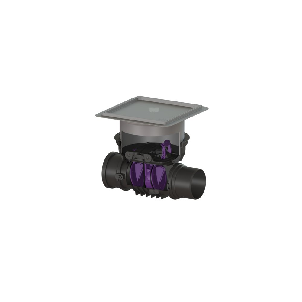 Zawór przeciwzalewowy do ścieków bez fekaliów jest wyposażony w dwie klapy mechaniczne, które samoczynnie zamykają się podczas przepływu zwrotnego. Jedna klapa zwrotna służy jednocześnie jako ręczne zamknięcie awaryjne.