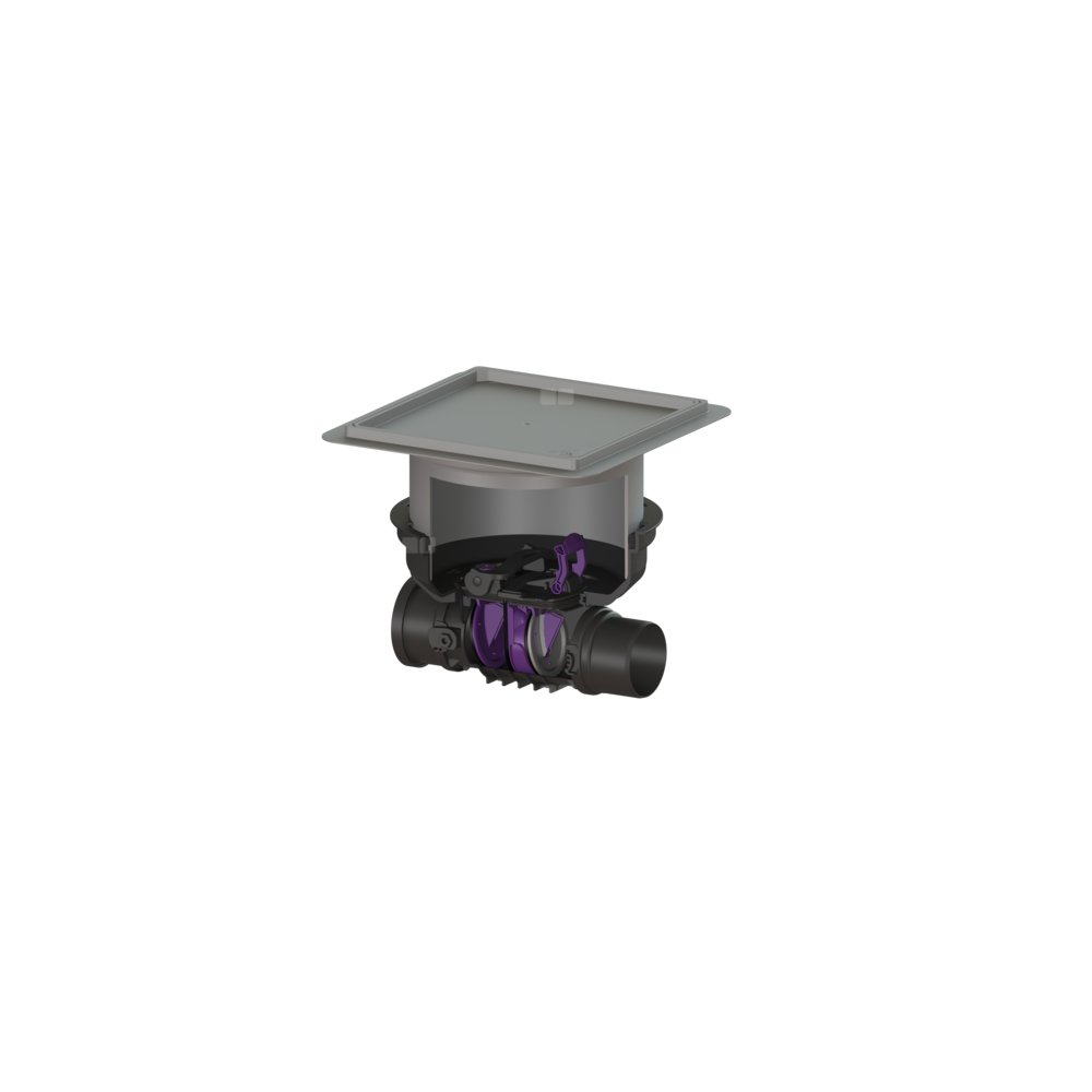 Zawór zwrotny (zasuwa burzowa) Staufix DN 100 z pokrywą pod płytki z 1 klapą z tworzywa i 1 klapą ze stali nierdzewnej