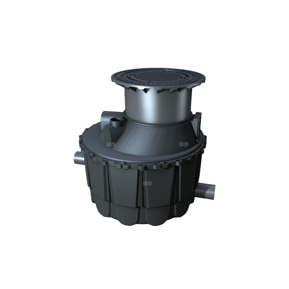 Studzienka do pobierania próbek do zabudowy w ziemi, przepływowa, z dopływem i odpływem do podłączenia do rury SML wg DIN 19522, nasadą z pierścieniem zaciskowym i kluczem do wyjmowania