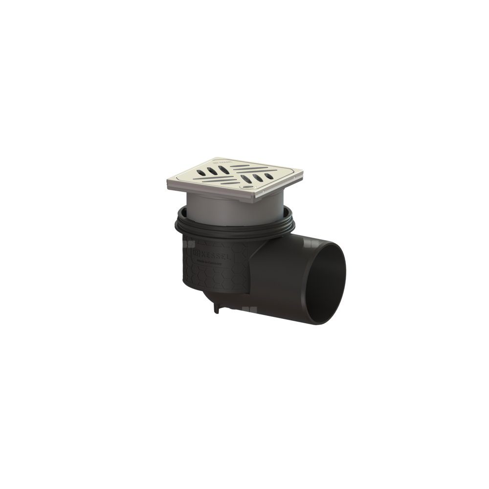 Wpust KESSEL Ecoguss z 1 przyłączem DN 100, odpływ poziomy (zdejmowany), kratka 120x120mm stal nierdzewna