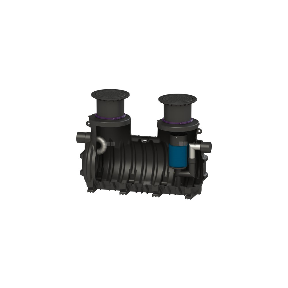Separator cieczy lekkich nadaje się do zabudowy w ziemi i jest wyposażony w wyjmowany wkład koalescencyjny. Zbiornik wykonany z trwałego tworzywa sztucznego (PE) zawiera zintegrowany osadnik i samoczynne urządzenie zamykające. Dwie wodoszczelne pokrywy chroniące przed wodą napowierzchniową umożliwiają łatwy dostęp w celu wyczyszczenia lub konserwacji. Dla klasy obciążenia D należy w miejscu instalacji zamontować płytę odciążającą. Schematy zbrojenia są dostępne w firmie KESSEL. Możliwe jest przyłączenie na miejscu budowy na dopływie i odpływie rur PE-HD wg DIN 19537, rur PVC-KG wg DIN 19534, PP lub AS do fabrycznie wykonanych króćców rurowych ze stali nierdzewnej. Przy doborze odpowiednich uszczelnień i materiałów rurowych należy przestrzegać obowiązujących norm. Gwarancja na tworzywo PE wynosi 20 lat.